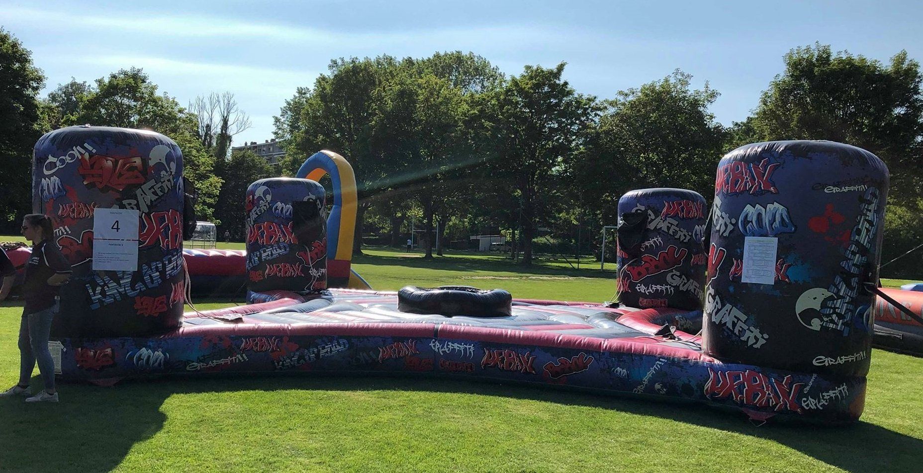 Je begint met 4 personen, elimineer je “tegenstanders” ze door met de slingerbal van het kussen te storen. Laat zien dat je de meest behendige bent. Deze attractie is geschikt voor kinderen en volwassenen.